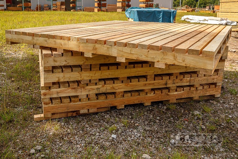 Load capacity of 4 tons, larch wood, stainless steel fasteners.