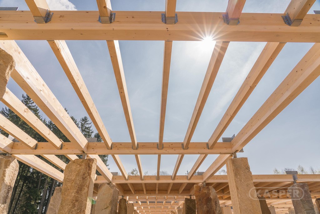 V prvním pololetí roku 2018 jsme realizovali kompletní dodávku nosné dřevěné konstrukce novostavby pavilonu Ayurvédské medicíny v Resortu Svatá Kateřina, který vznikl podle návrhu architekta Jakuba Tejkla. Skeletový nosný systém je zajímavý svým osazením na kameny (menhiry) výšky od 1 do 2 m a také atypickým tvarem sloupů – půdorysně ve tvaru „+“ „T“ a „L“ tyto byly vyrobeny dílensky a na stavbě se pouze osadily. Veškeré prvky konstrukce jsou strojně opracovány na CNC dřevoobráběcím centru Hundegger K2i. Celkový objem veškerého použitého řeziva byl cca 340 m3.
