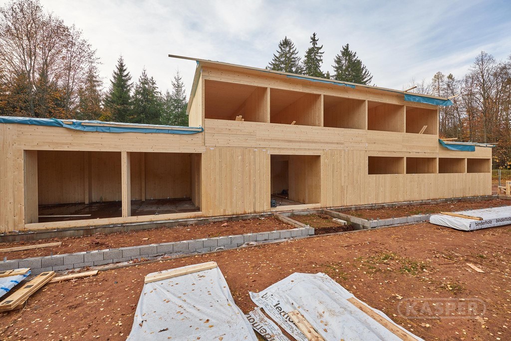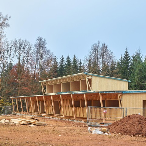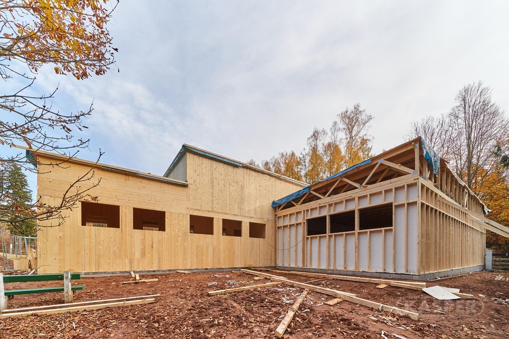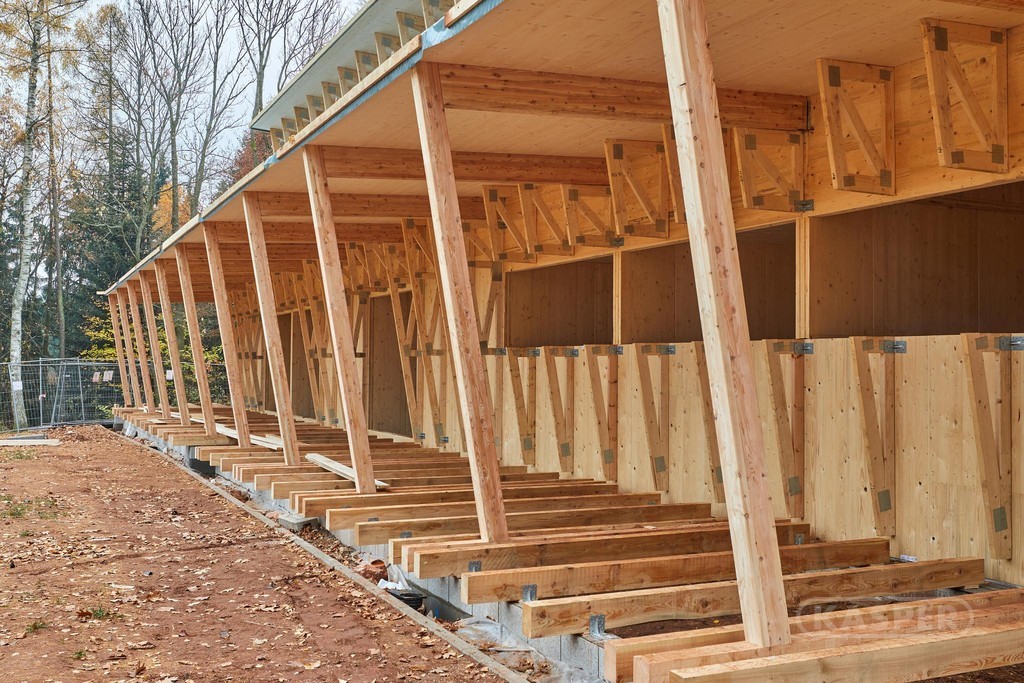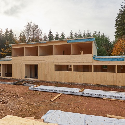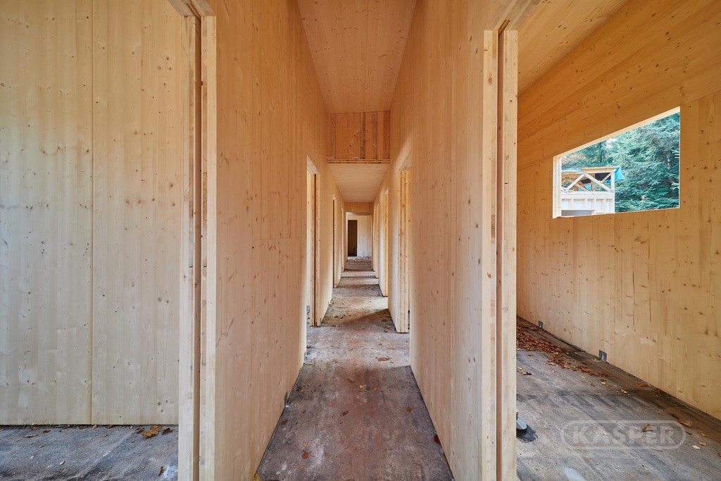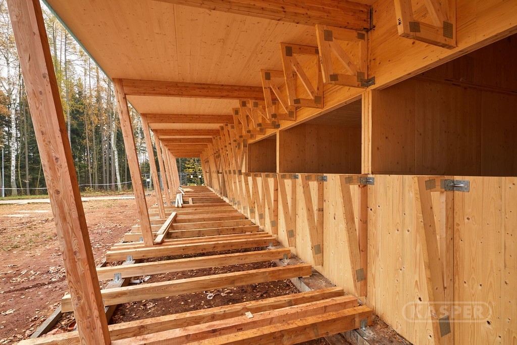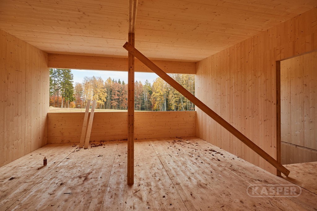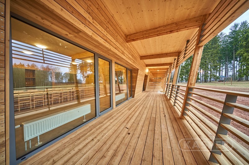 Na stavbu je použito smrkové a modřínové dřevo - 1000 m² CLT (cross laminated timber) panelů, které v Čechách zatím nejsou příliš běžné, 160 m² panelů two by four, 8 m³ modřínového masivu, 250 m² střech z vazníků a řeziva S4S (asi 20 m³).