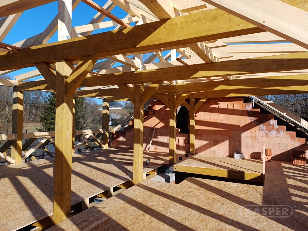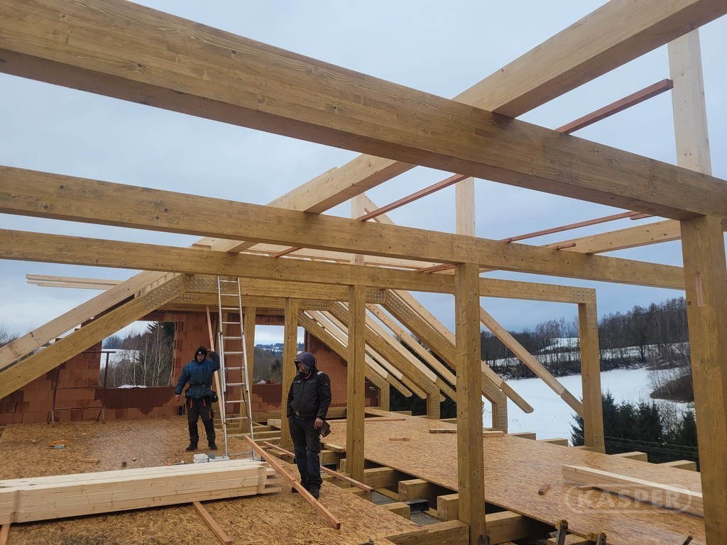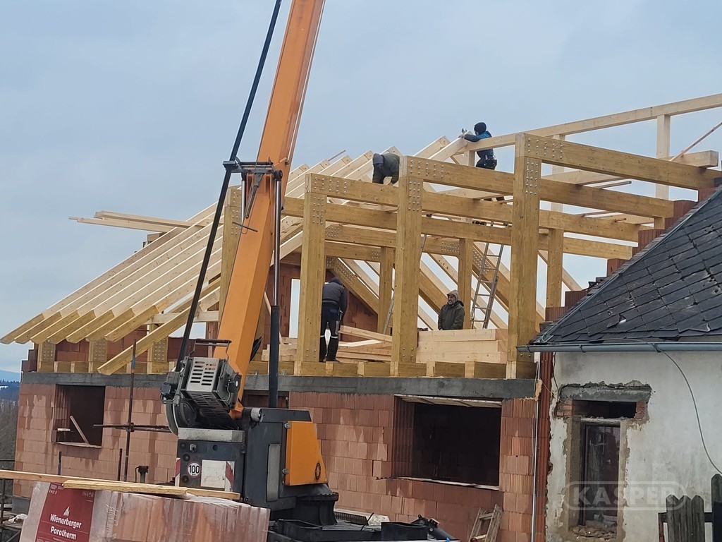 Když rekonstrukce, tak od základu! A základem každého rodinného domu, ve kterém se dobře žije, je kvalitní střecha. Proto jsme při realizaci ve Vikanticích vytvořili konstrukci z lepených dřevěných rámů, které jsme doplnili vázanou soustavou v pohledovém provedení. Spojili jsme tak moderní technologie s řemeslnou precizností, aby vznikla nejen pevná, ale i esteticky působivá konstrukce.
