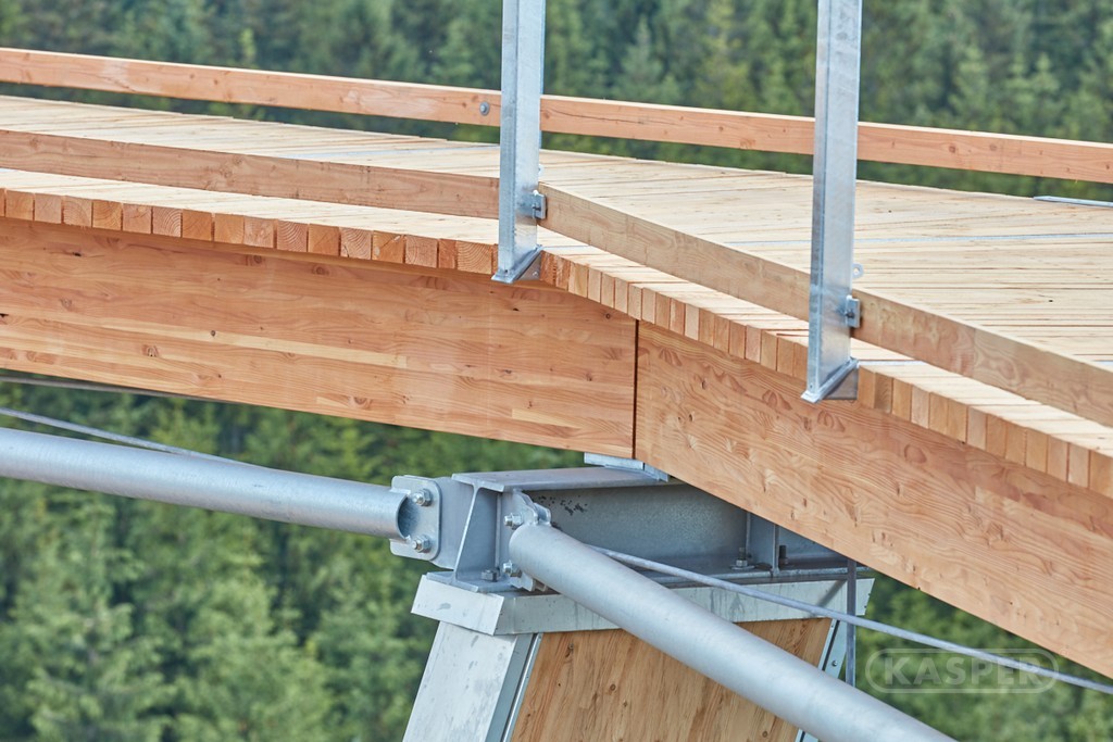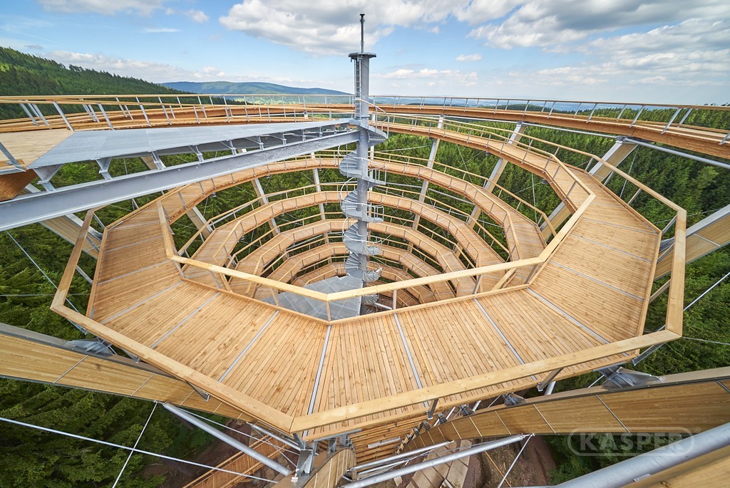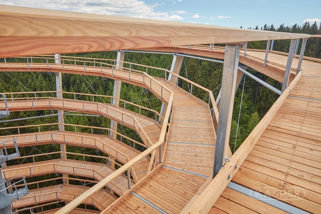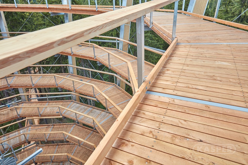 Firma KASPER CZ dodávala na Stezku korunami stromů prefabrikované dílce konstrukce podlahy vyhlídkové věže. Dodávku tvořilo 150 dílů délky 4–10 m, tvořených vždy z tří masivních nosných prvků doplněných nášlapnými hranoly podlahy. Vše bylo vyrobeno z řeziva borovice Douglasky.